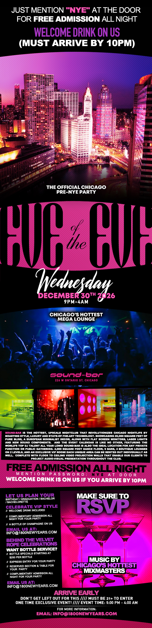 Win a pair of tickets to NYE 2027 at the 101 Chicago. Just “Like” us on Facebook!